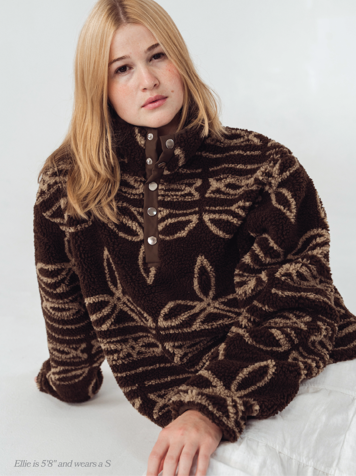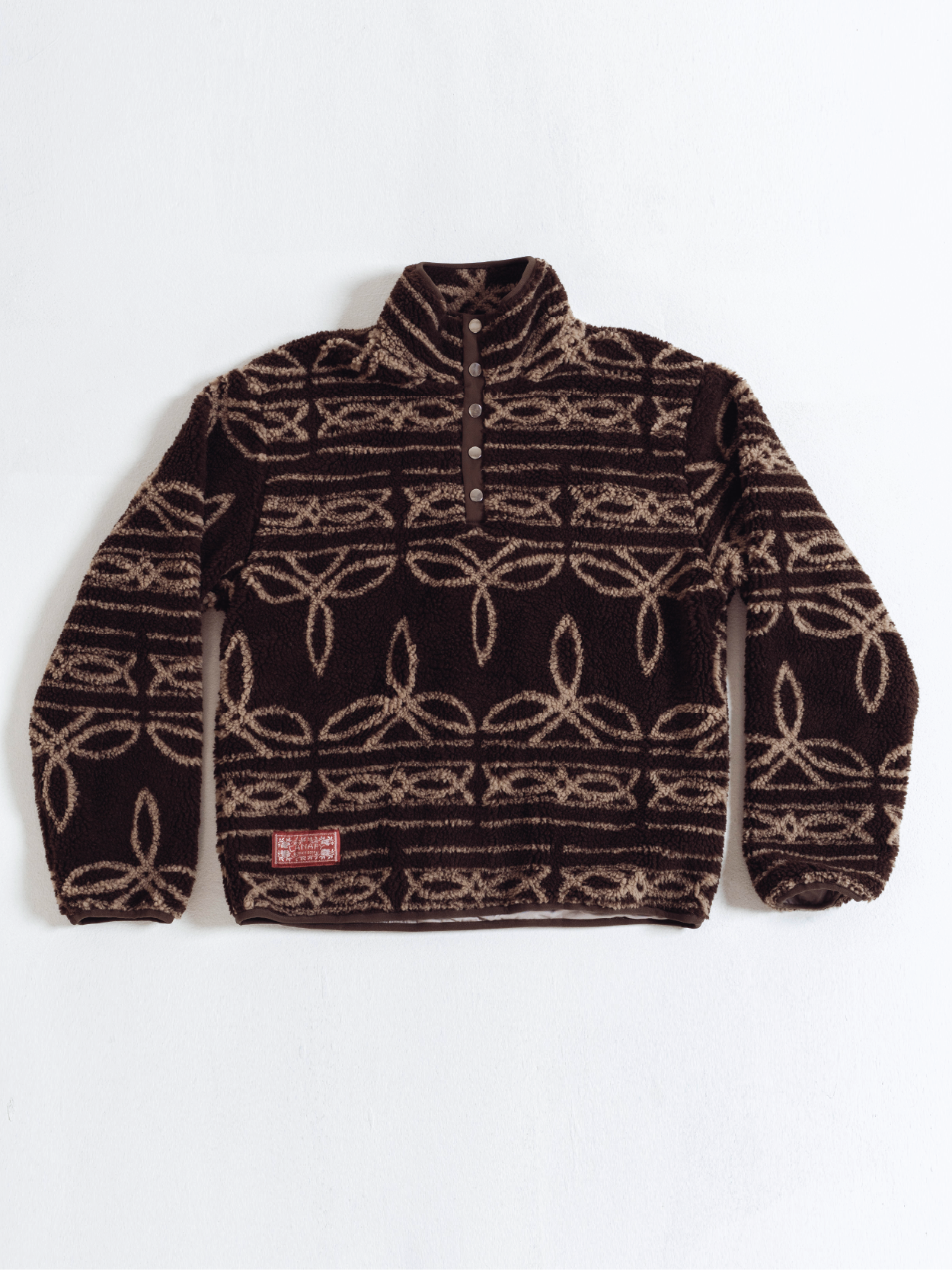 A soft fleece pullover lined with t-shirt material for extra comfort. Designed with a quarter-button closure and structured collar for a cozy, refined look.