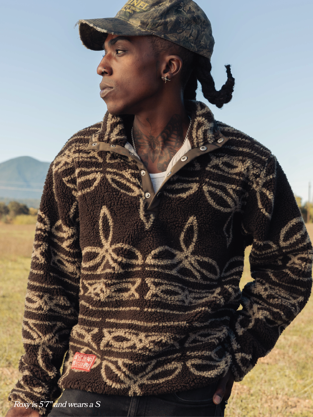 Unisex. True to size. Fleece and Poly-Cotton blend.